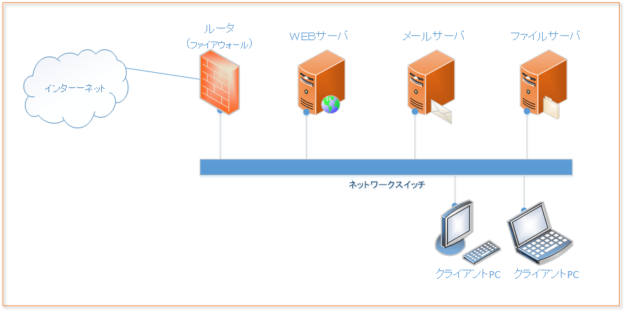下図は企業における最低限の構成になるかと思います。(サーバが統合されている場合もありますが・・・)